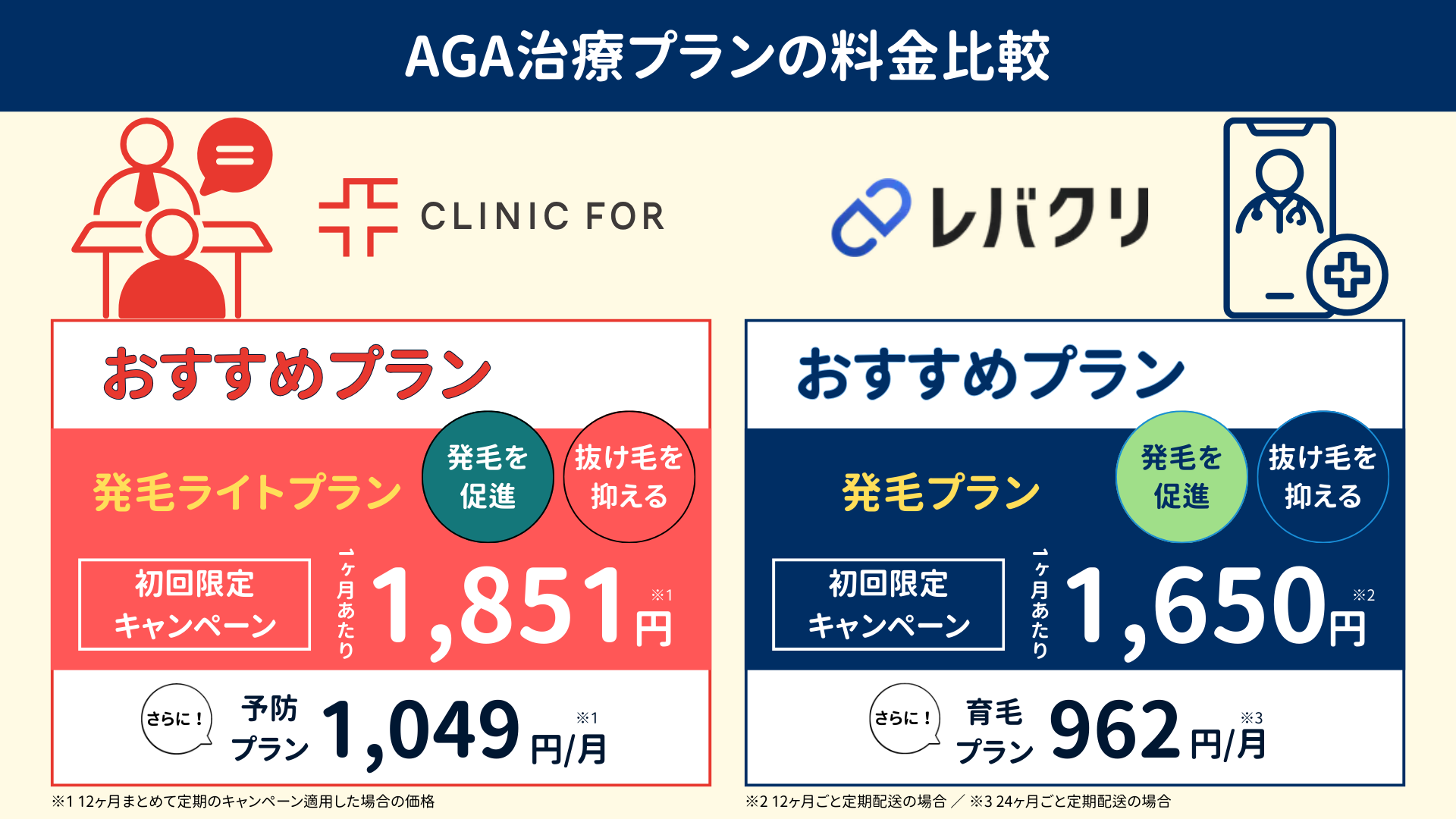 AGA治療の料金はクリニックフォアとレバクリ、どっちが安い?