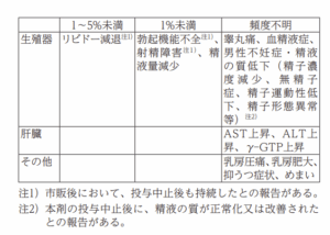 | 性機能障害 | 勃起機能不全や射精障害、精液量の減少など |