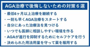 ネット上でAGA治療を受けて後悔したという方の多くに、治療期間や治療手法が記載されていないケースも多く、必ずしも同じような環境、薬剤、治療期間をしている方の声ではないということに留意することが重要です。
