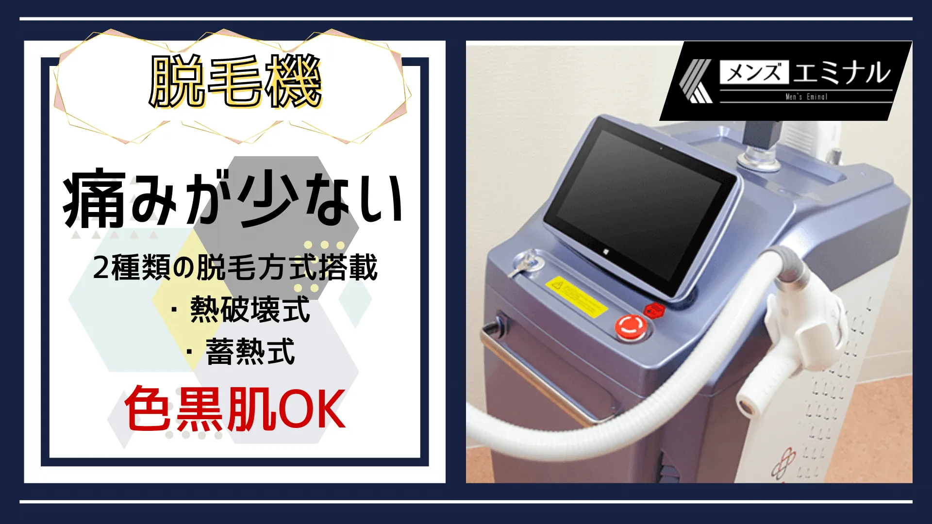 『エミナルクリニックメンズ 新宿院』では、2種類の脱毛方式搭載の脱毛機「クリスタル・プロ」を使用しています。