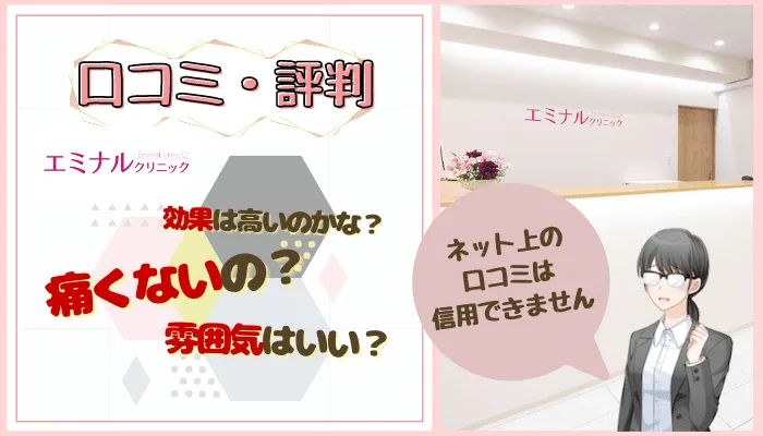 ネットで口コミを検索していると、エミナルクリニックの悪い評判が目に入るかもしれませんが、投稿されている内容を信じてはいけません。