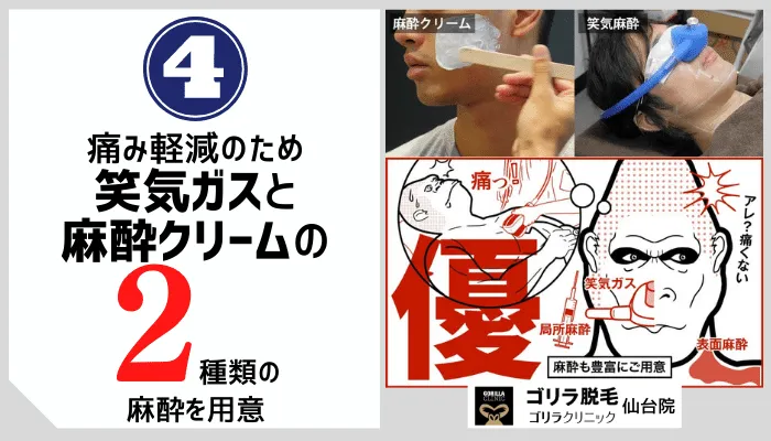 ゴリラクリニック仙台院では、痛み軽減のために2種類の麻酔を用意している。