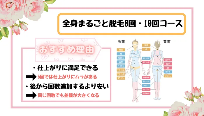 おすすめは「全身まるごと脱毛8回・10回コース」
