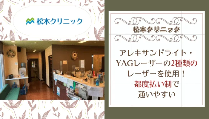 松本クリニックについてさらに詳しく知りたい方は、『松本クリニックの評判・魅力を徹底調査!詳しい脱毛料金や4つのおすすめポイントをご紹介』の記事も参考にしてくださいね。