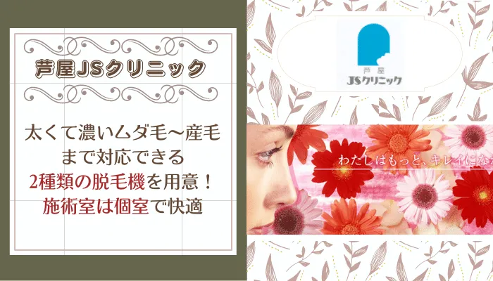 芦屋JSクリニック』では、太くて濃いムダ毛に最適なアレキサンドライトレーザーと産毛脱毛用にオーロラ光治療器を使って施術を行っています。