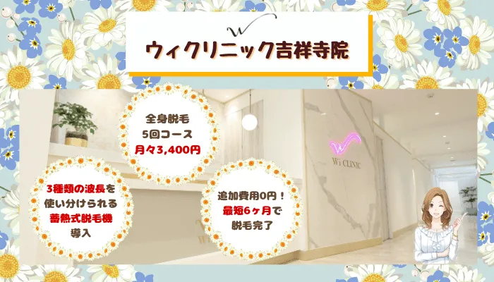 吉祥寺周辺にある医療脱毛クリニック全13院から、脱毛料金が安く脱毛完了まで快適に通えるクリニック5院をご紹介しました。