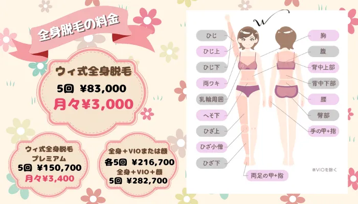 どちらも1回[affi id=1809]で脱毛できます。その他のプランに関してはクリニックに来院した際に確認してみてください。