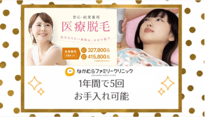 なかむらファミリークリニック』では、脇脱毛1回[affi id=1945]・5回コース[affi id=1927]のプランが人気です。