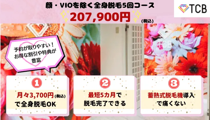 『TCB東京中央美容外科水戸院』は、脇脱毛5回コースを初回[affi id=293]で受けられるおすすめの医療脱毛クリニックです。
