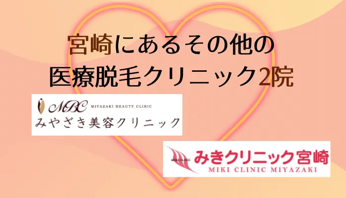 宮崎には、上記でご紹介したクリニック以外にも2院の医療脱毛クリニックがあります。