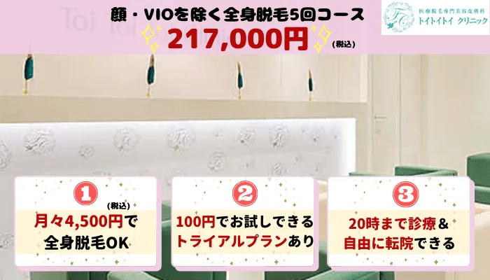トイトイトイクリニック原宿院:初回は1万円程度でお試し可能