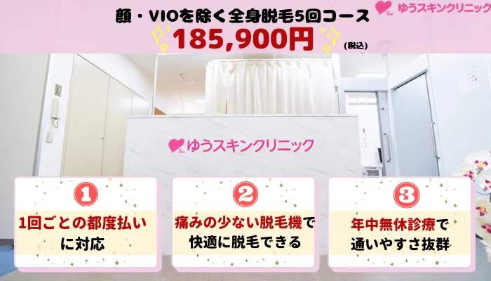 ビューティースキンクリニック:都度払いorコースを選択OK!全身脱毛は3つのプランあり