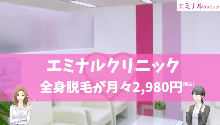 最後まで読んでもまだクリニック選びで迷っている…という方には、全身脱毛の料金が安い&最短5ヶ月で脱毛完了できる『エミナルクリニック』をおすすめします。