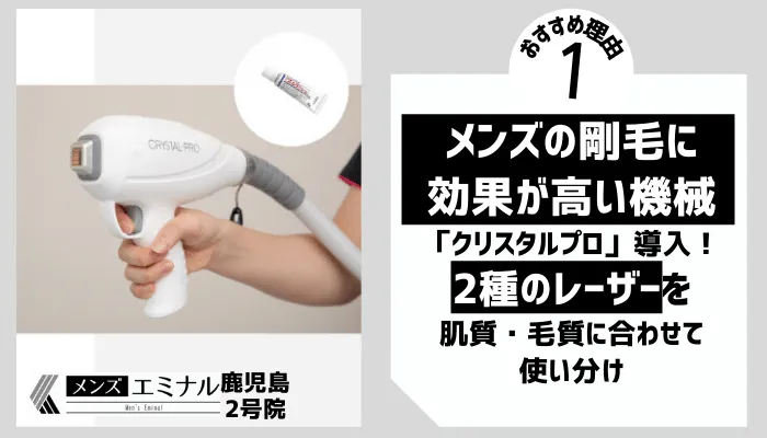 エミナルクリニックメンズ鹿児島2号院は、ヒゲ脱毛が月々[affi id=3036]ライトプランを契約できる、麻酔代など追加費用が不要など多くの魅力があるクリニックだ。