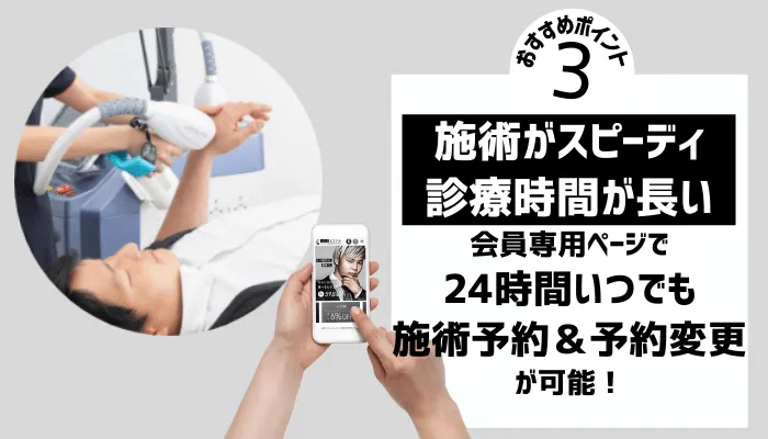 会員専用ページから24時間いつでも簡単に手続きできる。クリニックによっては予約変更は電話のみというところもあるので、ネット上で全て完結できるのはエミナルクリニックメンズの強味の1つである。