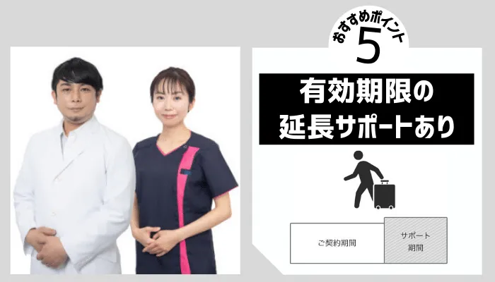 コース契約をしていて、途中で長期出張や留学、入院などで通えなくなってしまった場合、有効期限を延長できる「サポート期間」を設けている。