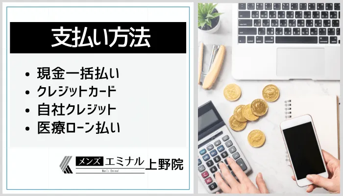 次に、エミナルクリニックメンズ上野院の支払い方法を確認しよう。