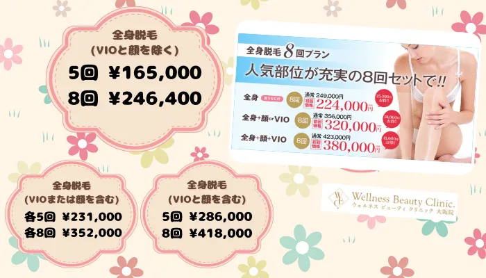 あおばクリニック心斎橋院・大阪梅田院:全身・VIO・顔・脇脱毛の都度払い価格が安い!初回限定プランあり