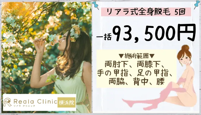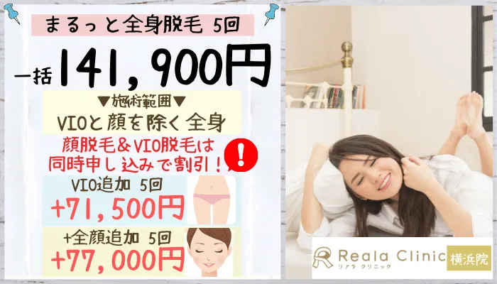 リアラクリニック横浜院は提携院から外れたため、記事内の料金で施術を受けることができません。