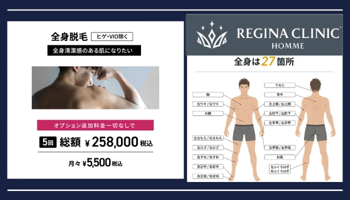 髭・VIOを含む全身脱毛OK!レジーナクリニックオムの脱毛料金