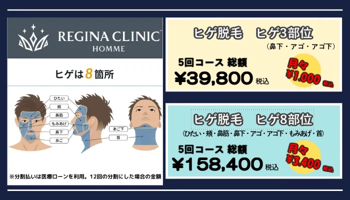 まずは『レジーナクリニックオム』の脱毛料金を詳しく見ていきましょう。