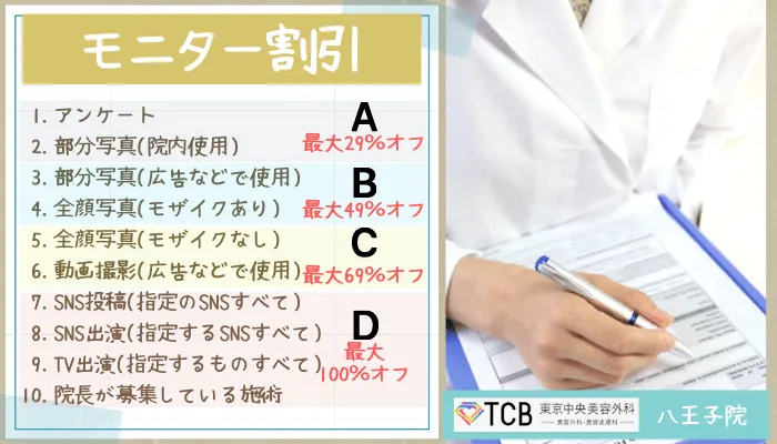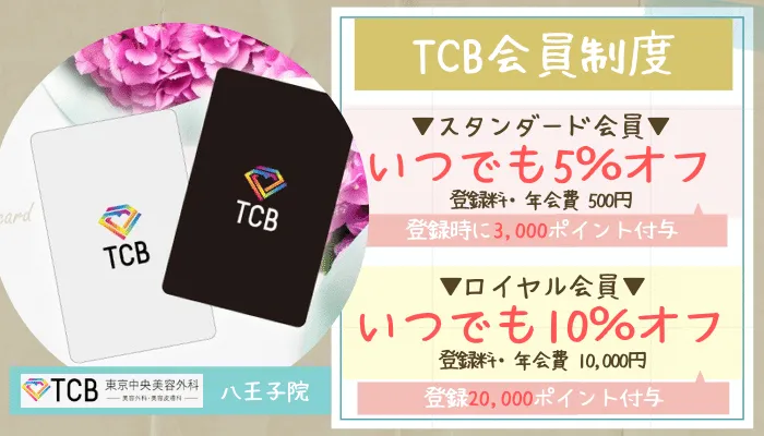 割引 ・TCB会員制度(全施術いつでも5~10%オフ)