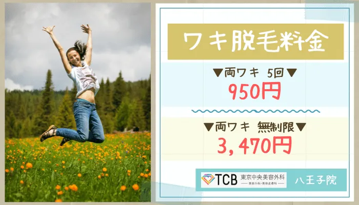 しかも、医療脱毛では珍しい回数無制限コースも用意されているので、八王子でワキ脱毛を考えているなら絶対にTCB八王子院がおすすめです。