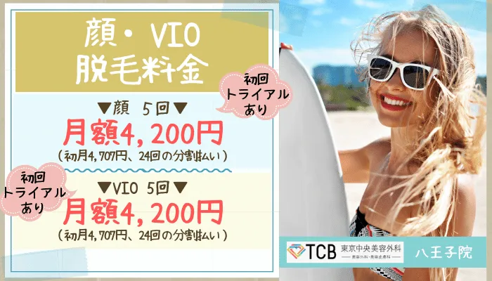 当記事では、『TCB(東京中央美容外科)八王子院』が気になっている方に向け、脱毛料金や口コミ評判、おすすめ理由などを調査しました。