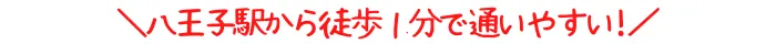 TCB八王子院は、JR「八王子駅」から徒歩1分、京王線「京王八王子駅」から徒歩5分ほどの場所にあります。