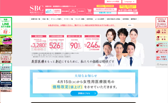 ヒゲ脱毛の都度払い料金が安いのは湘南美容外科クリニックです。