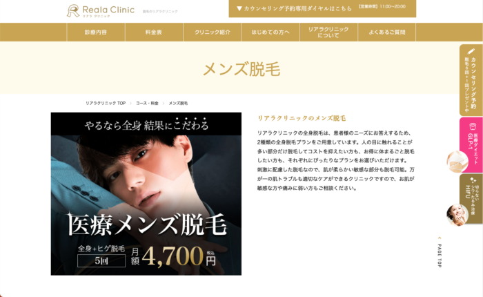| リアラクリニック | 学割 / ペア割 / のりかえ割 ※指定のセットプランのみ |