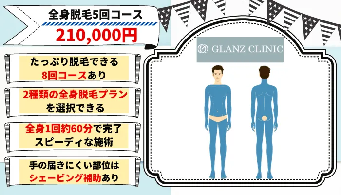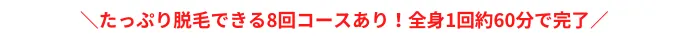 - 全身脱毛(首全面・VIOを除く):[affi id=3665]/8回