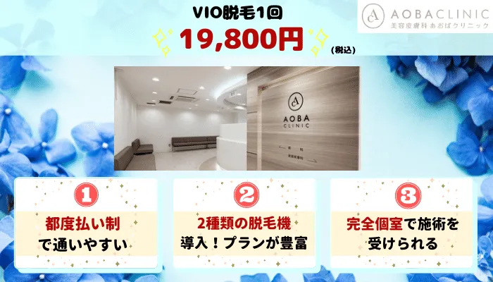 1回ごとの都度払いでVIO脱毛を受けたい方におすすめ!あおばクリニック札幌院