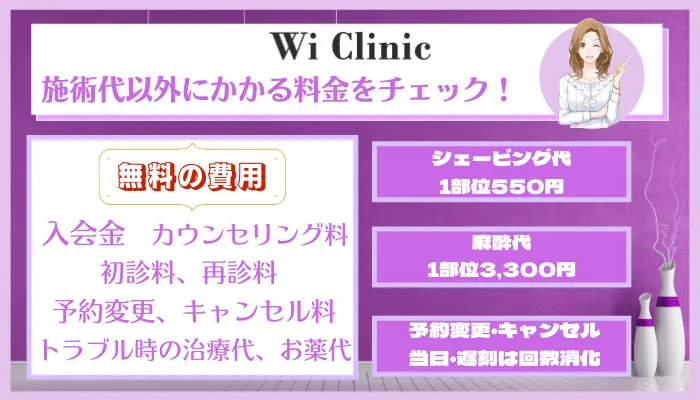ウィクリニックの施術代以外にかかる料金について解説します。