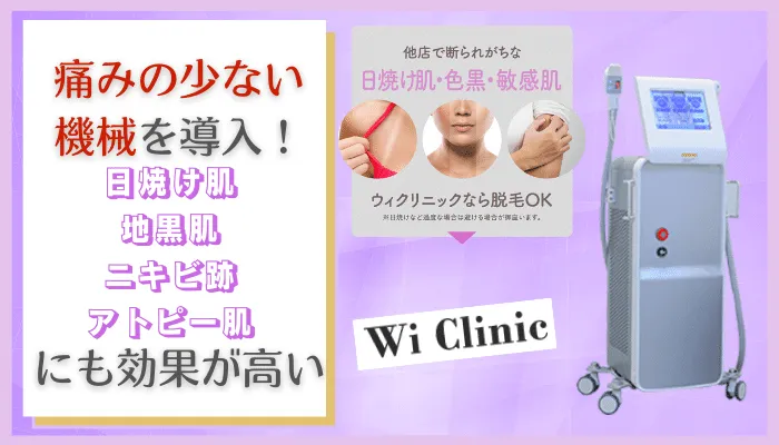 ウィクリニックの機械は従来の医療脱毛で使用されるものより痛みが少ない・幅広い肌質や毛質に対応できるメリットがあるため、あなたの肌質・毛質に最適な医療脱毛を受けることができますよ。
