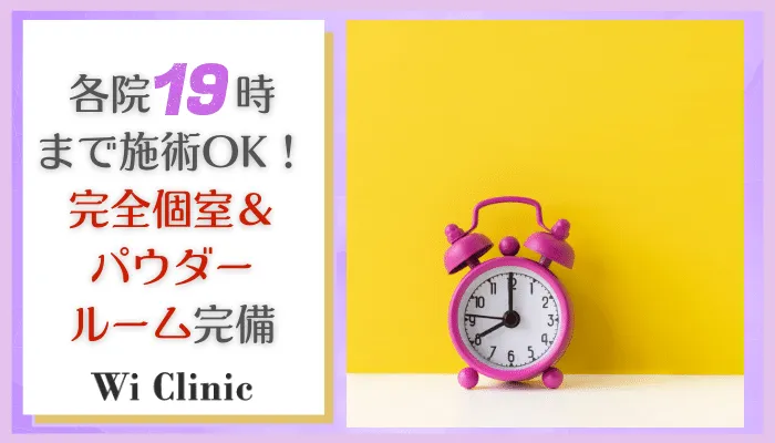 ウィクリニック各院は19時まで施術を受けられる環境です。