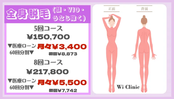 続いて、ウィクリニックの全身脱毛料金を紹介します。