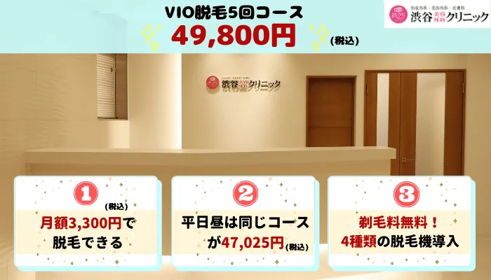 渋谷美容外科クリニック横浜院:5回コース[affi id=520]からVIO脱毛可能