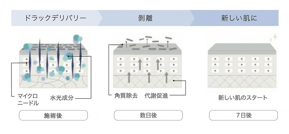 | ダウンタイム | ・チクチクとした感覚が直後から翌日まで続きます(針は最大72時間肌を刺激し続けます) ・皮膚再生プロセス中にざらざらしたり乾燥や毛穴が目立つように見える場合があります ・血中の酸素供給により赤みが数日続く場合があります ・肌質により軽い剥離が起こる可能性があります |